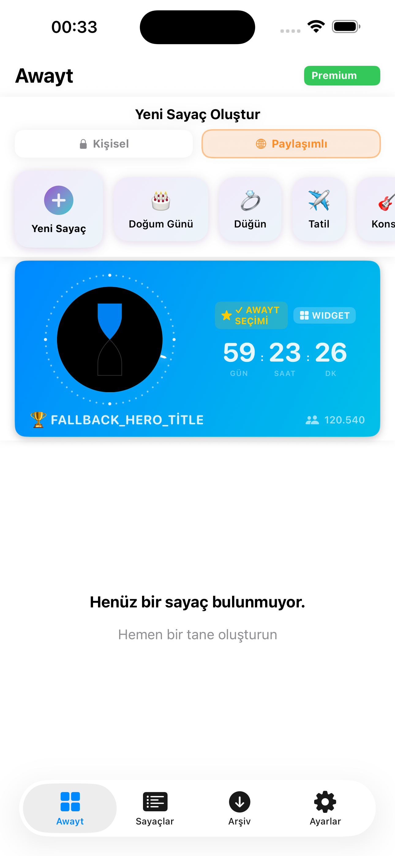 | Shared Countdown (we-Wayt) | 1 Active | Unlimited |
